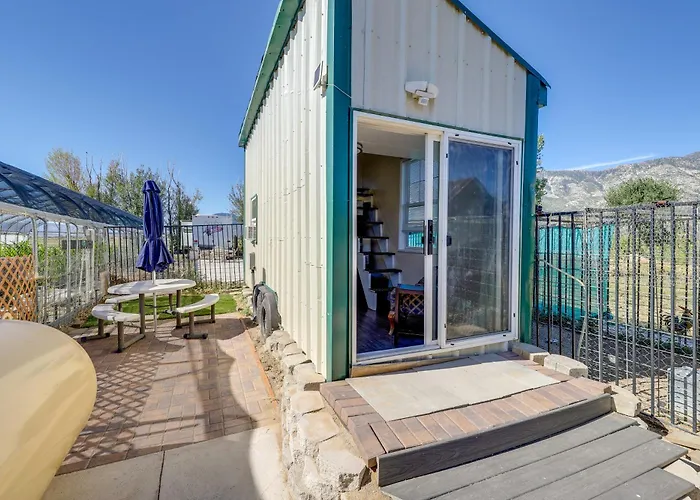 O 11 Mi To Heavenly Resort Pet-Friendly Tiny Home Gardnerville inclui pátio e está localizado a aproximadamente 7 km de Carson Valley Museum and Cultural Center. Este apartamento possui um clube de golfe e campo de golfe, perfeitos para os hóspedes que gostam de se manter ativos.